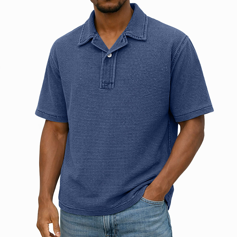 Men's Plaid Waffle Polo Shirts Golf Shirt Short Sleeve Polo Shirts Collared Shirts Vintage Casual Vacation Wear Formal Wear Festival Wear 3D Print Buttons Blue Light Yellow Light Pink