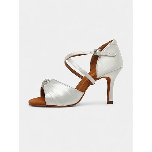 scarpe da ballo latino in raso da donna, tacchi da sala da ballo professionali con cinturino e fibbia di strass per spettacoli, competizioni matrimoni