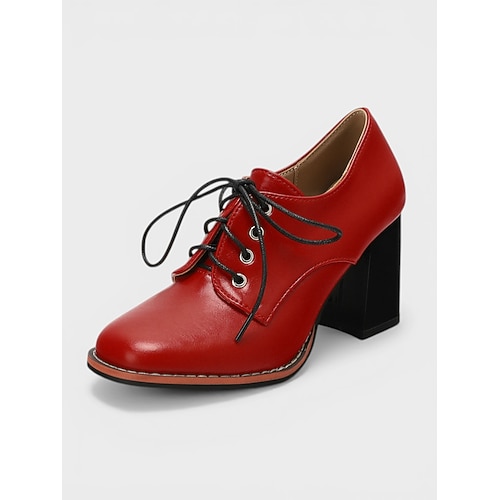Scarpe Oxford da donna vintage marroni con tacco alto - classiche scarpe con tacco a blocco e punta a coda di rondine, allacciate e con dettagli brogue, perfette per l'ufficio, la scuola e tutti i
