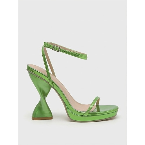 Sandali da donna verdi metallizzati con tacco alto e cinturini, scarpe da festa trendy con tacco a spillo per la vita notturna e le serate in discoteca. eventi serali