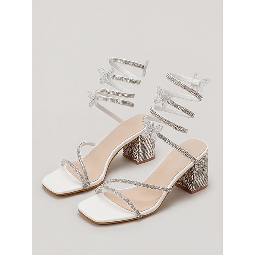 Sandali da donna con tacco alto e cinturini in strass, scarpe eleganti con tacco a blocco e cinturino alla caviglia per cocktail party e balli di fine anno. eventi serali