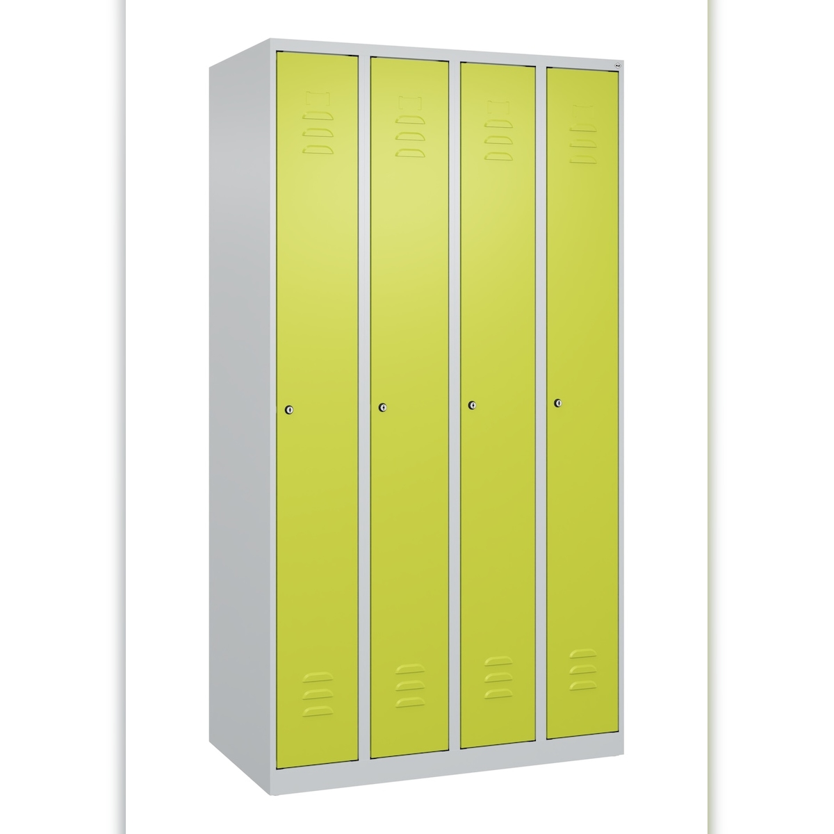 C+P Spind Classic PLUS, 4 Abteile, HxBxT 185x100x50cm, Zylinderschloss, Hellgrau/Clowngrün von PROREGAL