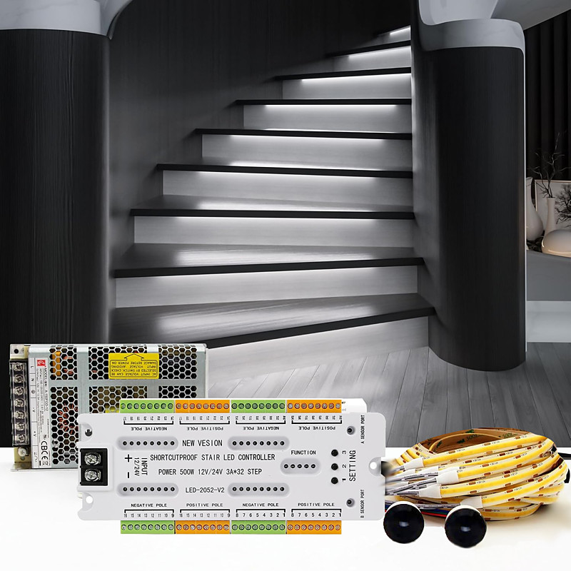 Intelligent Motion Triggered LED Stair Lighting Kit 10-24PCS 4.1ft Cuttable COB LED Strip Light for Indoor LED Stair Lights Equipped with Switch Plug Cable