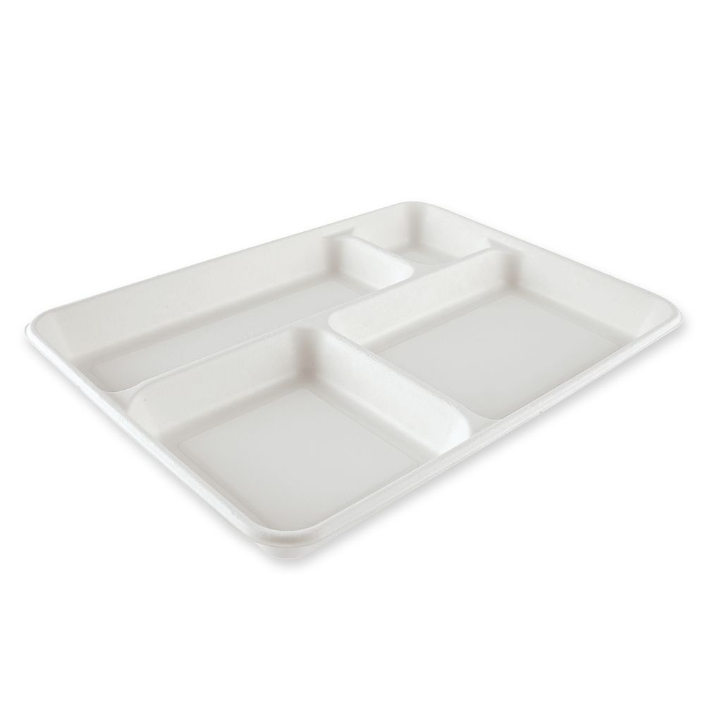 Bio Tablett 4-geteilt aus Zuckerrohr Farbe Weiss 27x37x3,6 cm 20 Stück