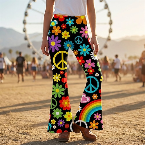Retrò Vintage Boho Anni '70 Pantaloni Pantaloni a zampa d'elefante Hippie Disco Vita alta Psichedelico Costume Per donna Halloween Carnevale Festival Musicale Festa a tema retrò Adulti Pantaloni