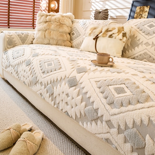 Copridivano in pile imbottito e caldo jacquard bohémien, copridivano antiscivolo