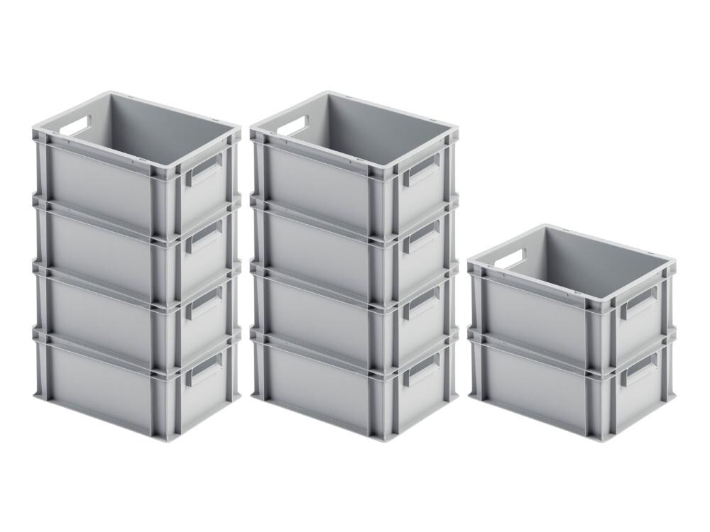 PROREGAL 10x Eurobehälter mit offenem Griff | HxBxT 17,5x30x40cm | 16 Liter | Grau | Eurobox, Transportbox, Transportbehälter