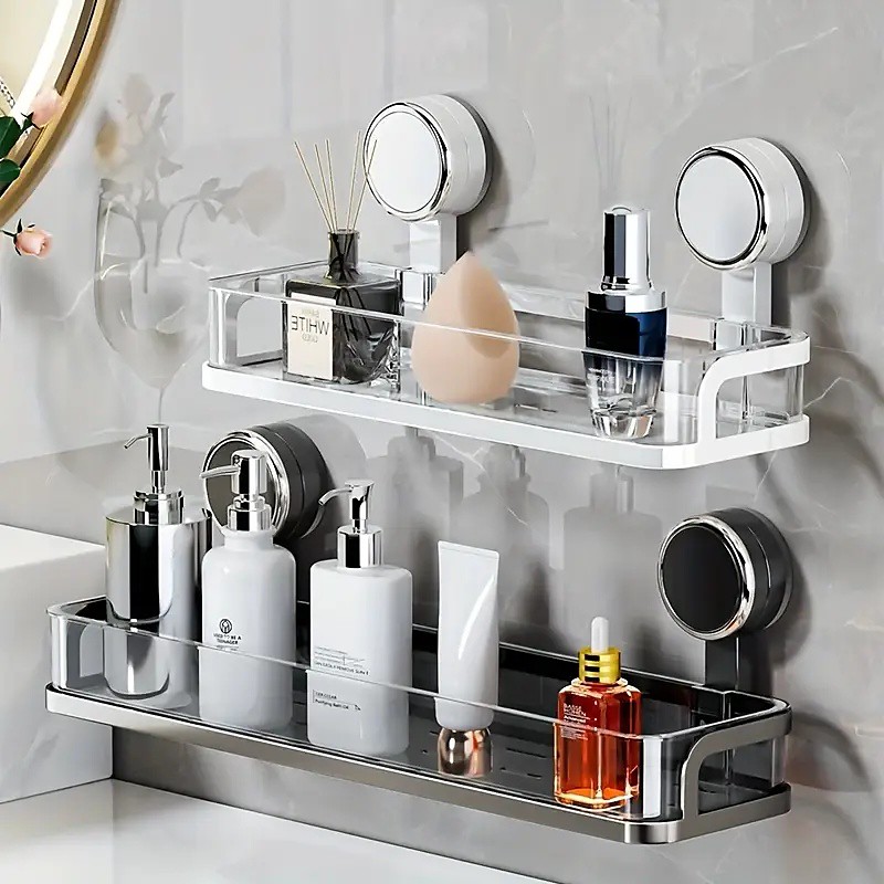 Wall-Mounted Suction Cup Bathroom Shelf Waterproof Cosmetic Storage Shelf with Drainage Perfect for Bathroom Kitchen Organization