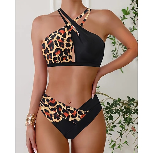 Per donna Costumi da bagno Due pezzi Birichino Costume da bagno Taglio Senza schiena Vacanza Abbigliamento da Spiaggia Leopardo All'americana Senza Maniche Costumi da bagno