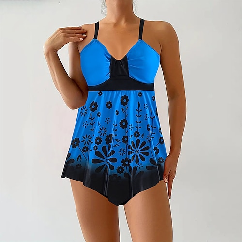 Per donna Costumi da bagno Due pezzi Birichino Costume da bagno Senza schiena Vacanza Vintage Floreale Grafico Scollo a V Senza Maniche Costumi da bagno
