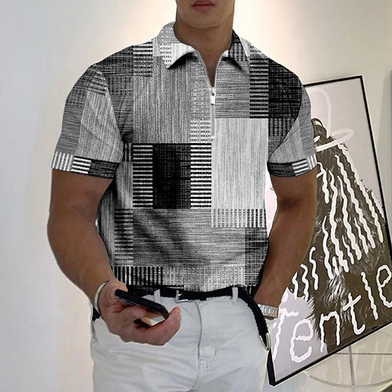 Men's Plaid Zip Polo Shirts Golf Shirt Short Sleeve Polo Shirts Collared Shirts Vintage Casual Vacation Wear Formal Wear Festival Wear 3D Print Quarter Zip Polo Yellow Blue Green