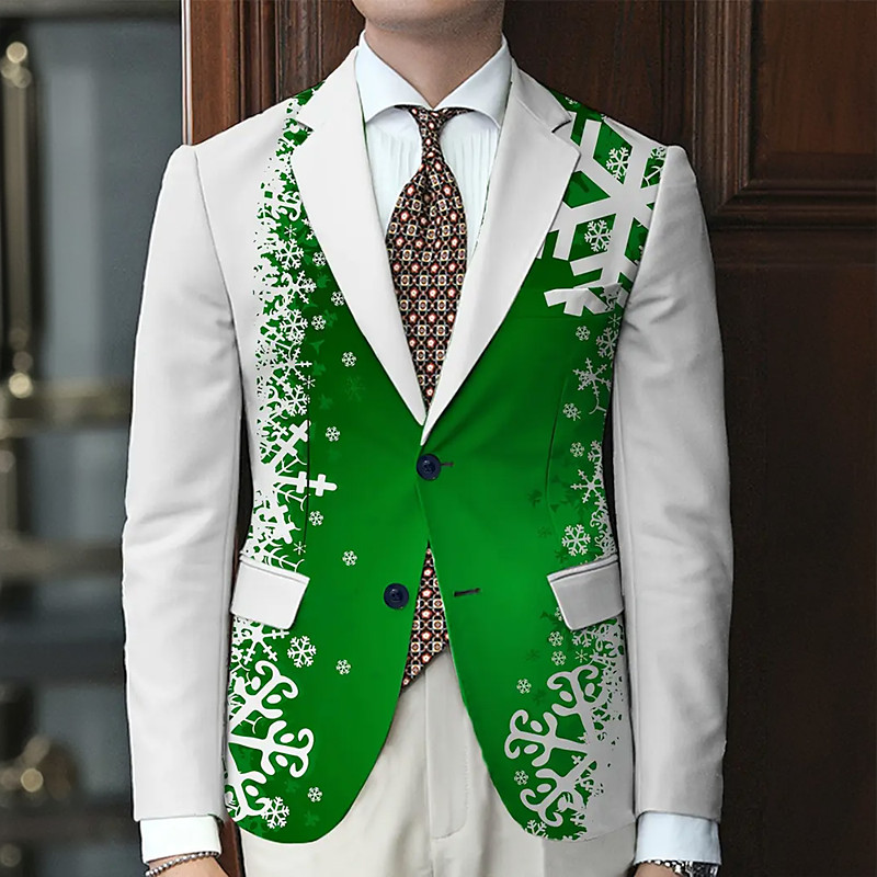 Men's Blazer Coat Christmas Outdoor Casual Casual Daily British Fall / Winter 100% Polyester Snowflake 3D Print Buttons Thermal Warm Comfortable Single Breasted Blazer Black Light Green Red Purple