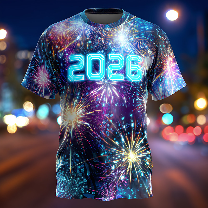 New Year Men's Happy New Year 2026 T Shirt Short Sleeve T shirt 3D Print Crew Neck Shirt Fashion Exaggerated Designer Party Street Club Blue 2# Blue 1# Purple Summer Spring Fall Clothing Apparel S M