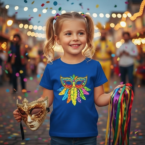 100% Cotone Carnevale Bambini Ragazze Blu Nero Bianco Grafico Maschera Martedì grasso Maglietta Girocollo Manica Corta Vacanza Sport Outdoor Abbigliamento Quotidiano Tropicale Sport Casual Stampato