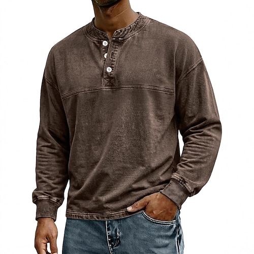 Per uomo Maglia Henley Camicia 100% cotone lavaggio acido Maglietta Manica Lunga Semplice Vintage Retrò Vintage Casual Tasca Grafico Henley Casuale Primavera Autunno Tutte le stagioni Nero Rosa Verde