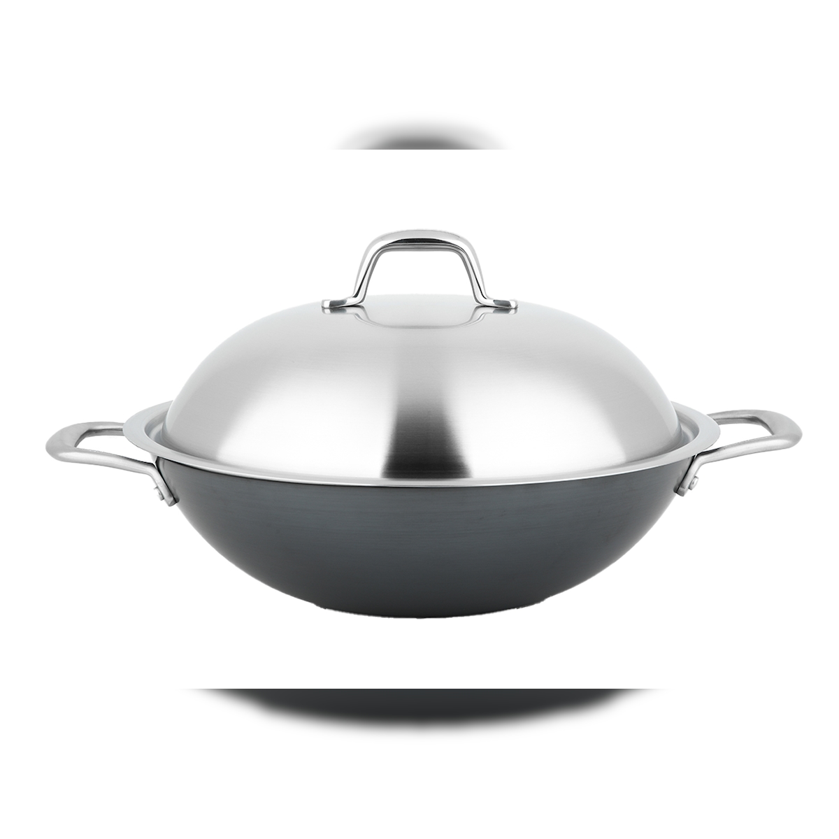 Carl Schmidt Sohn, ALTENA Ø 32 x 9cm Schmiedeeiserne chinesische Wok-Pfanne mit Edelstahl-Deckel