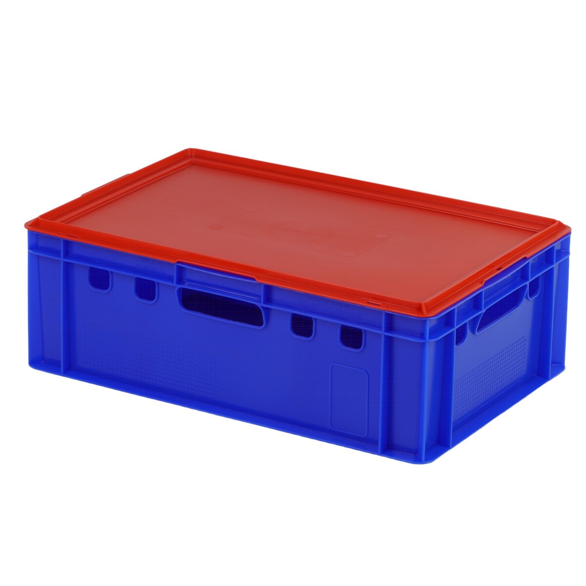 E2 Kiste (600 x 400 x 200mm) mit rotem Deckel Fleischkiste Lagerkiste Metzgerkiste in Blau