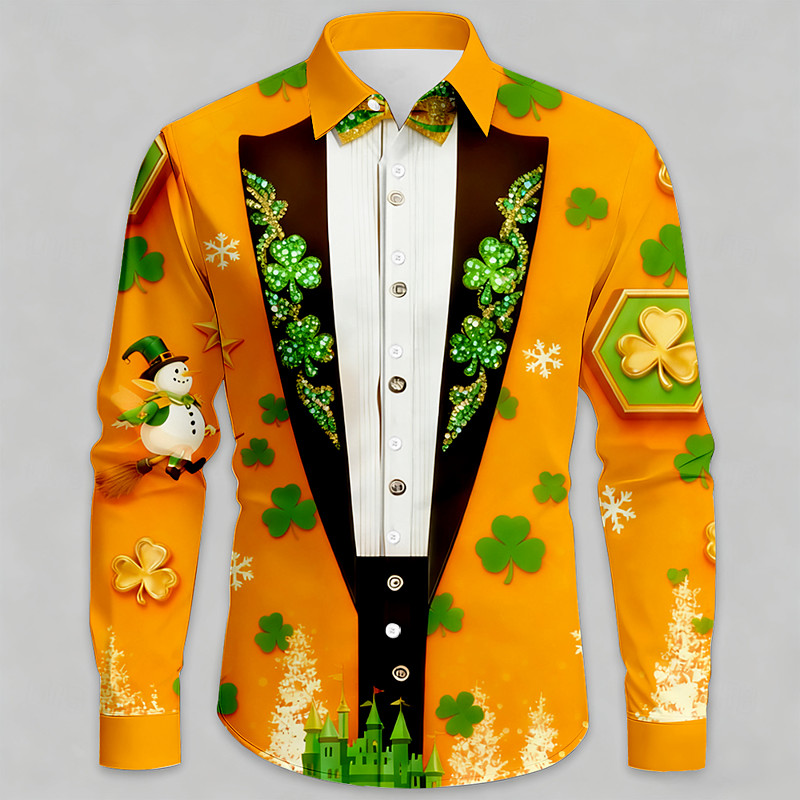 St. Patrick's Day Men's Clover Faux Collar and Suit Design Shirt Button Up Shirt Long Sleeve Fashion Casual Party Holiday Spring Fall Turndown 3D Print Collared Shirts Green 1# Purple Orange Green