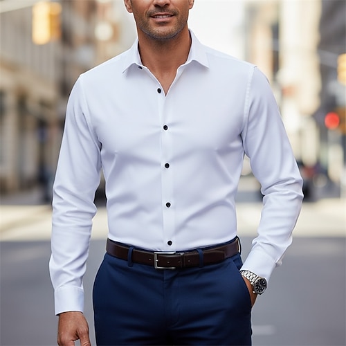 Per uomo Camicia elegante Camicia con Bottoni Semplice Lavoro Matrimonio Nero Bianco Verde chiaro Rosa Manica Lunga Collo ripiegato Tutte le stagioni Abbigliamento Base
