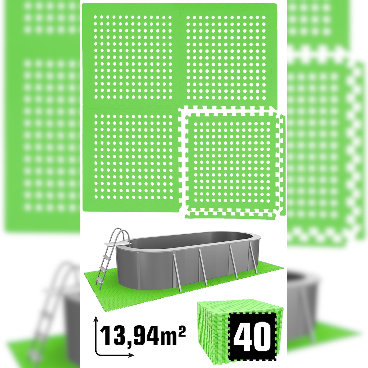 13,9 m² Poolunterlage - 40 EVA Matten 62x62 - Unterlegmatten Set Pool Unterlage