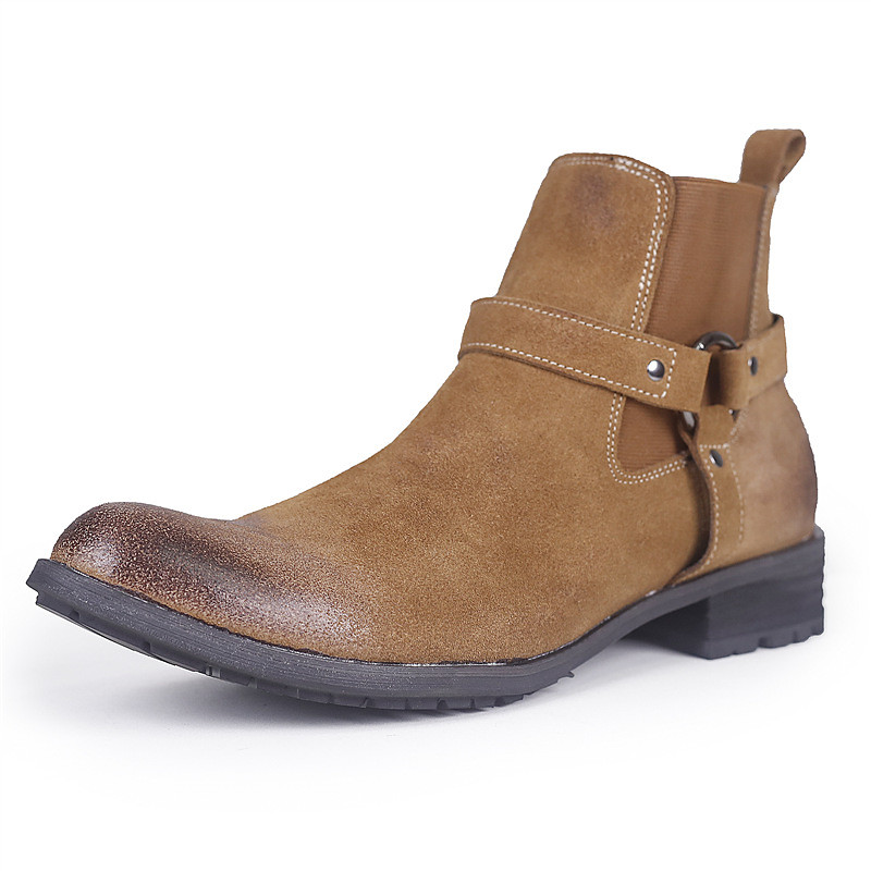 Men's Suede Leather Ankle Boots – Retro Buckle Strap Casual Chelsea Style Boots for Work and Weekend Outfits