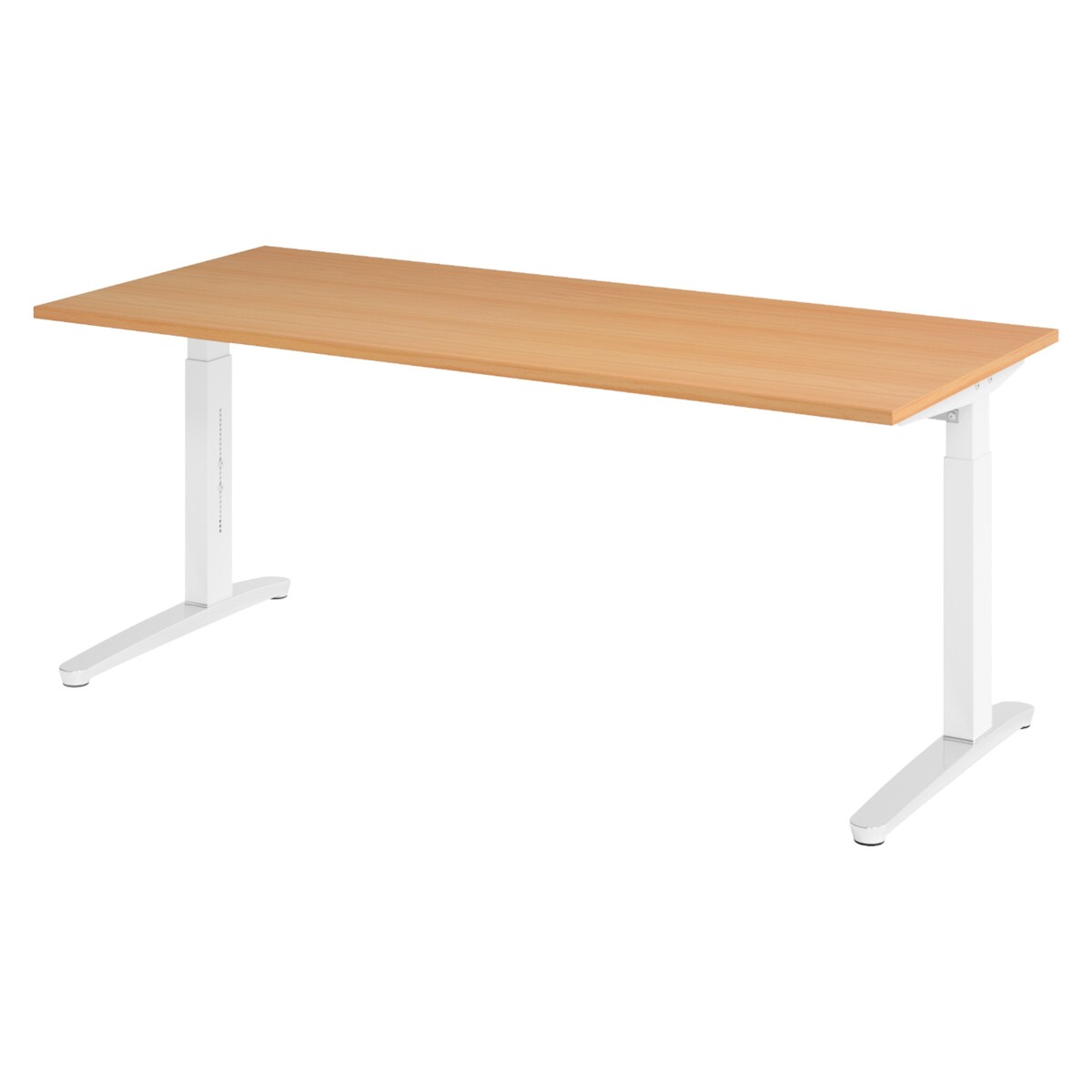 bümö manuell höhenverstellbarer Schreibtisch 180x80 in Buche, Gestell in weiß/alu - PC Tisch höhenverstellbar & groß, höhenverstellbarer Tisch Büro,