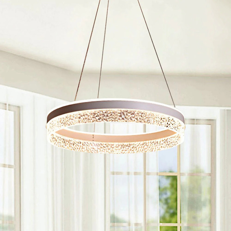 Modern Gold LED Chandelier, 36W Dimmable LED Pendant Light Fixture, 1-Ring Round LED Chandelier Suitable for Living Room, Dining Room, Kitchen, Island, Hallway, Office
