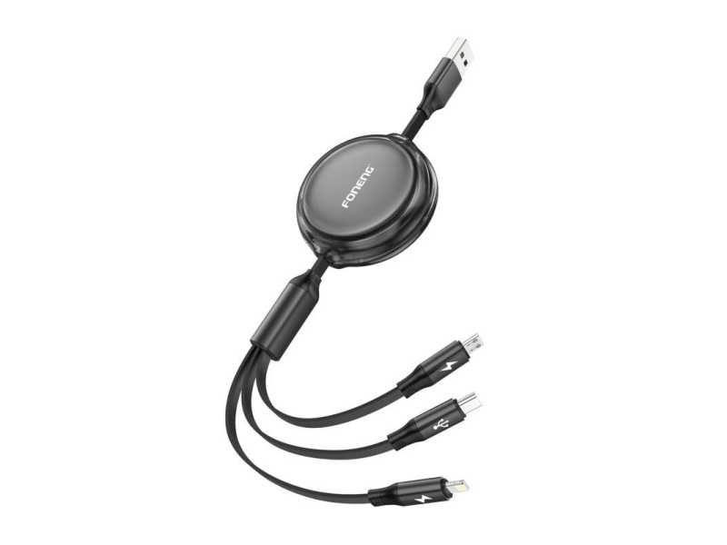 Foneng X113 3-i-1 kabel 1,1 m sort