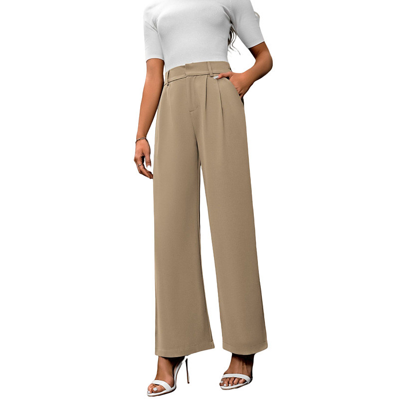 Women's Dress Pants Fashion Long Plain Side Pockets Wide Leg Breathability Comfortable Inelastic Daily Wear Khaki Spring Summer Regular Fit