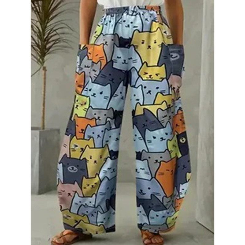 Women's Wide Leg Chinos Vintage Casual Full Length High Waist Graphic Abstract Elastic Waistband Inelastic Causal Casual Daily Grey White Blue Brown Summer Spring Loose Fit