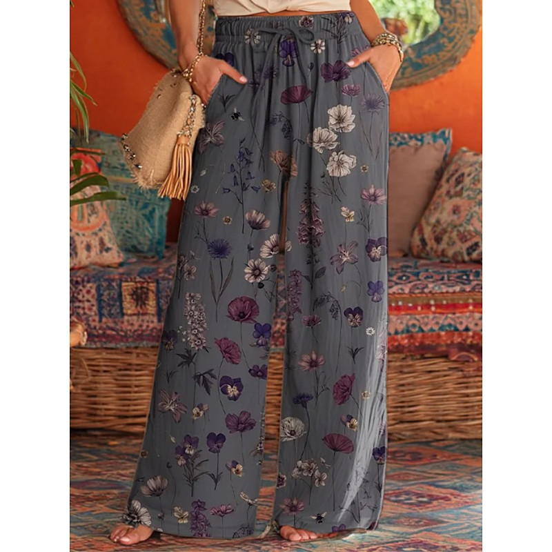 Women's Wide Leg Slacks Pants Trousers Fashion Boho Full Length Natural Floral Print Comfy Outdoor Comfortable Outdoor Vacation Weekend Wine Light Sky Blue Grey Blue Summer Regular Fit