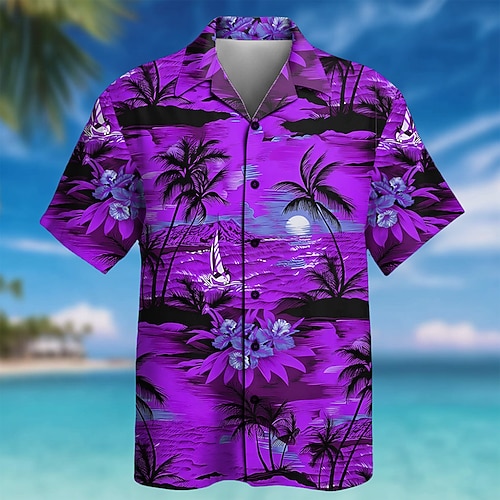 Herren Hemd Sommerhemd Freizeithemd Strandhemd Kuba-Kragen-Hemd Knopfhemd Schwarz Weiß Kaki Grau Kurzarm Einfach Kragen Urlaub Ferien Bekleidung Polyester Mode Lässig Bequem