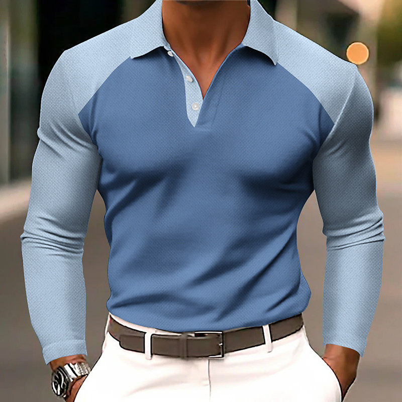 Men's Color Block Polo Long Sleeve Polo Shirts Lapel Business Casual Athleisure Daily Wear 3D Print Buttons Spring Fall Blue Blue 1 Blue 2#