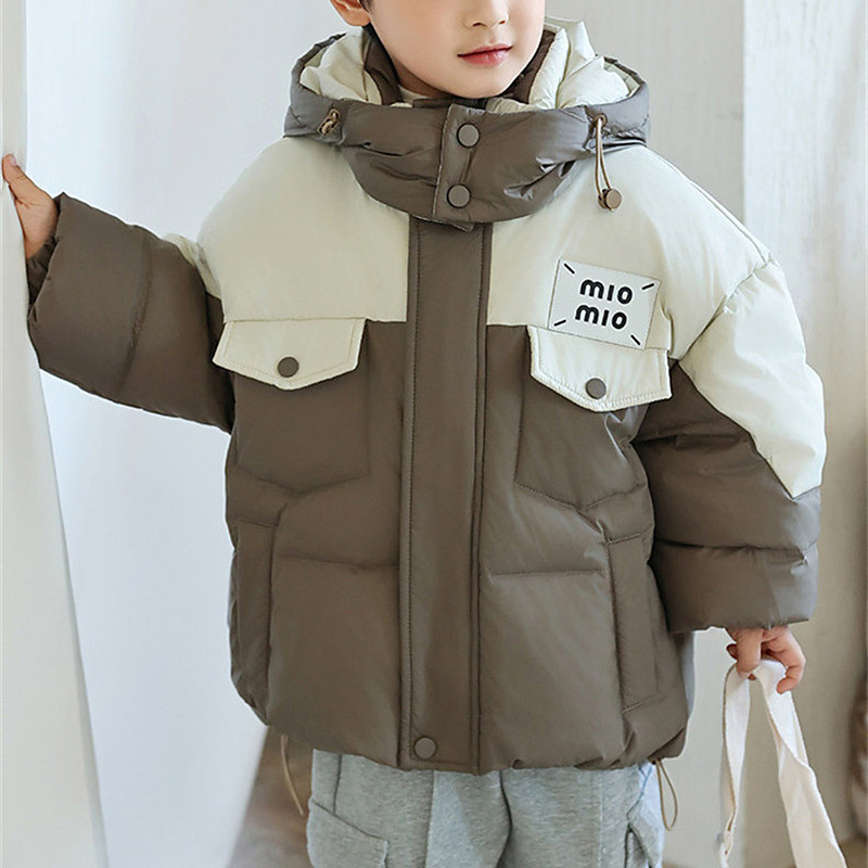 Kids Boys' Down Jacket Hoodie Jacket Puffer Jacket Outerwear Color Block Long Sleeve Keep Warm Windproof Coat Casual Daily Basic Black Brown Gray Fall Winter 4 years