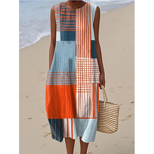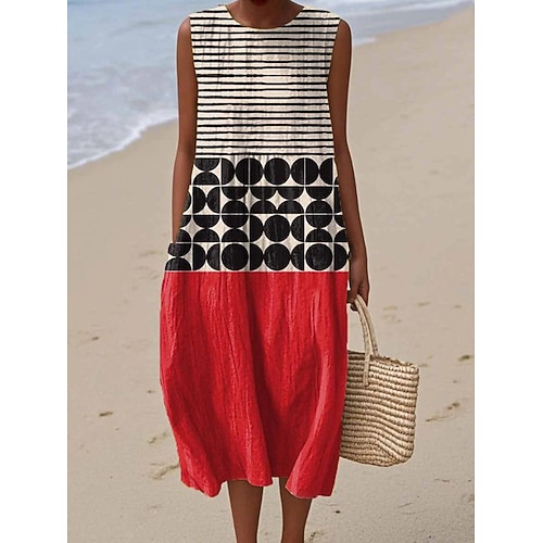 Per donna Abito Midi Vestito Estivo Abito a Tubino Abito a trapezio Vacanza Casual Boho Spiaggia Uscire Vestibilità comoda Grafico Geometrico Senza Maniche Girocollo Blu Rosso Marrone Verde Estate