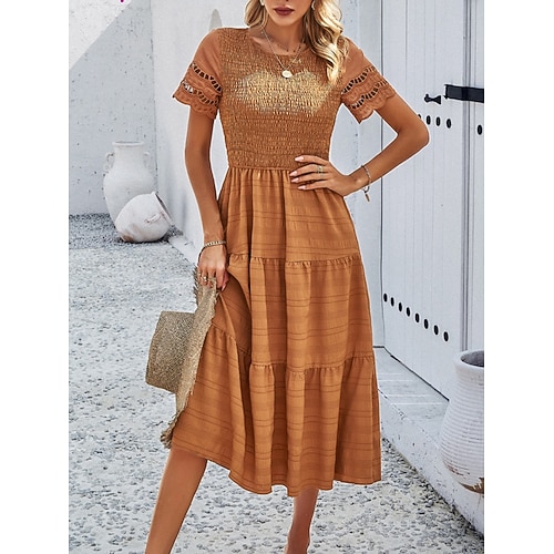 Per donna Abito Midi Abito a trapezio Abito Estivo Casual Quotidiano Vestibilità regolare Semplice Manica Corta Girocollo Nero Bianco Marrone Verde Estate Primavera