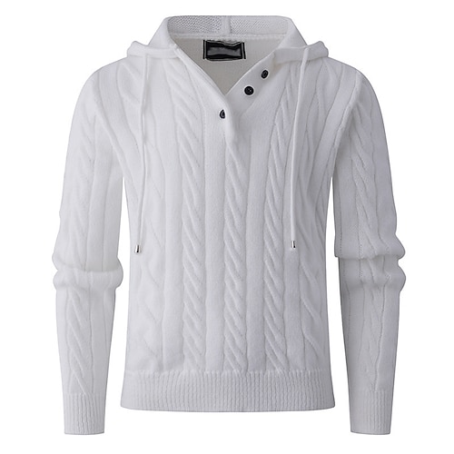Per uomo Maglione Maglione a maglia A Coste Maglia Top Regolari Bottoni Lavorato a maglia Semplice Con Cappuccio Moda Essenziale Vacanza Abbigliamento quotidiano Abbigliamento Autunno Inverno Bianco