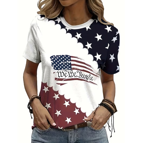 Giorno dell'Indipendenza Americana Per donna Maglietta Vintage Moda Elegante Manica Corta Girocollo Top Regolari Quotidiano Weekend Stampato Blu Bianco Rosso / blu Estate Primavera