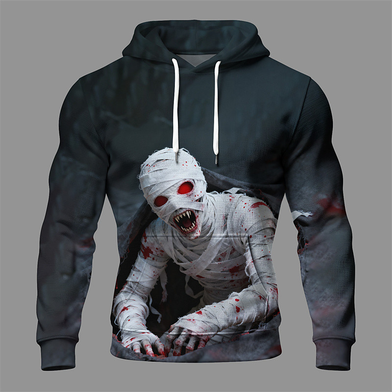 Halloween Men's Monster Hoodie Fashion Daily Casual Long Sleeve Hooded Vacation Party Streetwear Festival Dark Gray Drawstring Pocket Printing Fall Winter Designer S M L XL 2XL 3XL