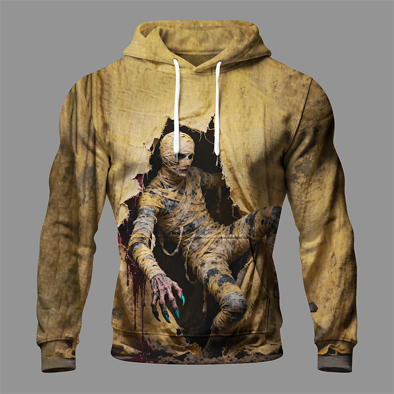 Halloween Men's Monster Hoodie Fashion Daily Casual Long Sleeve Hooded Vacation Party Streetwear Festival Khaki Drawstring Pocket Printing Fall Winter Designer S M L XL 2XL 3XL
