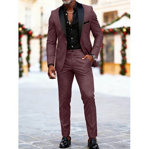 Per uomo Blazer pantaloni eleganti Completi Affari Cocktail party Ricevimento di matrimonio Moda Casual Primavera Autunno Poliestere Semplice Tasca Bottoni Confortevole Monopetto Giacca Nero Rosso
