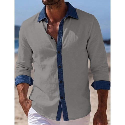 Per uomo Camicia Camicia di lino Camicia Estiva Abbigliamento da spiaggia Camicia da Spiaggia Camicia con Bottoni Blocco di colori Vacanza Ferie Blu Nero Bianco Rosa Manica Lunga Collo ripiegato