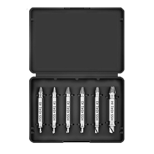 Set di 6 estrattori per viti danneggiate, punte da trapano HSS, estrattori per viti spanate e rotte, kit di rimozione facile e veloce, utensili elettrici per demolizione.
