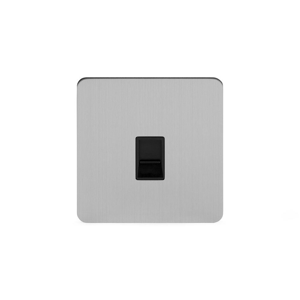 Soho Lighting Brushed Chrome Flat Plate 1 Gang Data Socket RJ45 Ethernet Cat5/Cat6 Blk Ins Screwless