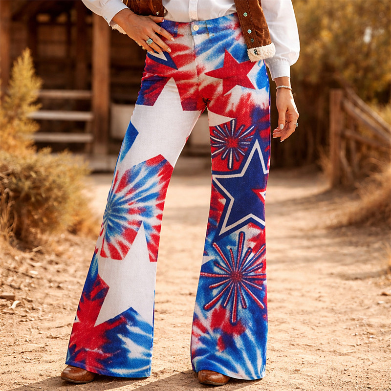 American 250 Retro Vintage 1970s Pants Wide Legged Pants Hippie Disco High Waist Fancy Dress Women's Masquerade 4th of July Party Independence Day Semiquincentennial Adults' Pants