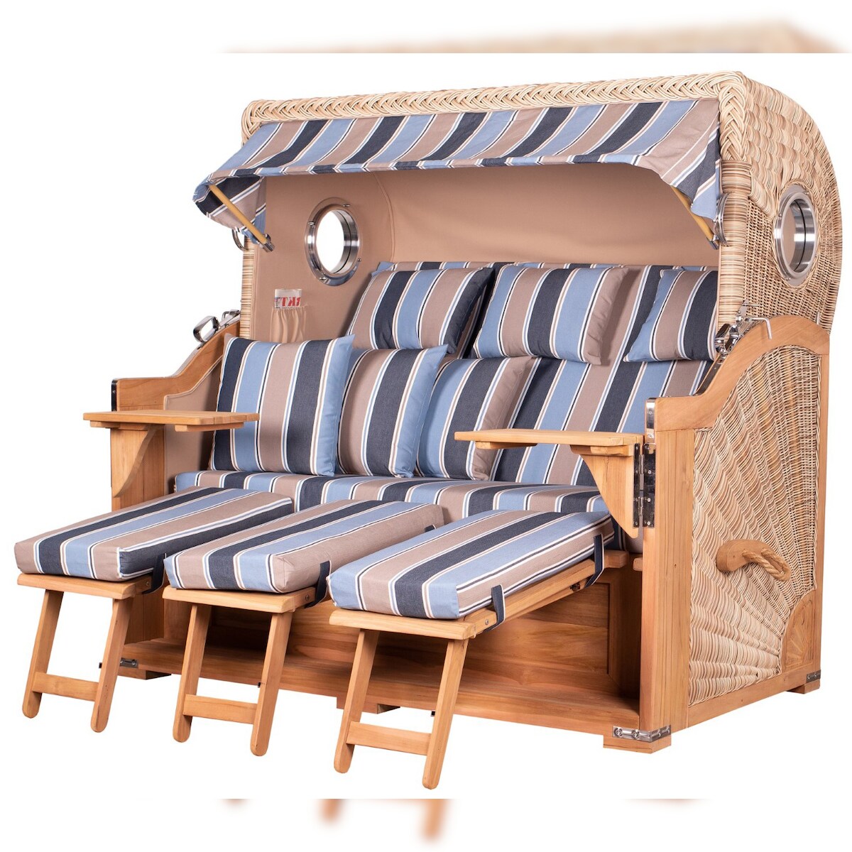 Mr. Deko Strandkorb - bene living - Königssee Dreisitzer Teak Bullauge - PE shell - Modell 580 - inkl. Liftersystem