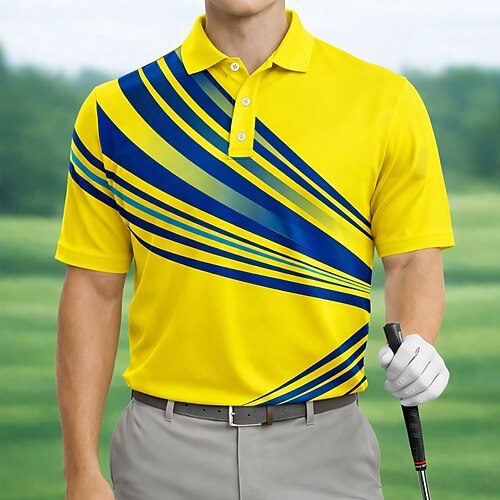 Per uomo Geometrico Golf Polo Sportivi Manica Corta Magliette polo Camicie con Colletto Casual Athleisure Bottoni Primavera Estate Blu Bianco Giallo