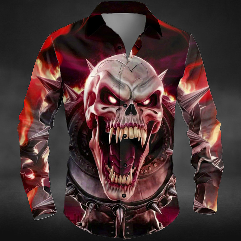 Halloween Men's Skull Neon Glow Halloween Costumes Shirt Button Up Shirt Long Sleeve Dark Punk Gothic Style Outdoor Holiday Summer Spring Turndown 3D Print Collared Shirts Red Blue Green