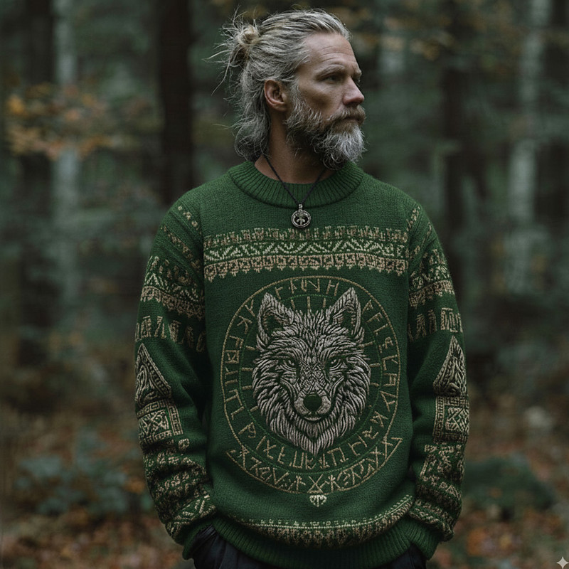 Men's Wolf Animal Patterned Viking Pullover Sweater Jumper Knitwear Crewneck Retro Vintage Casual Vacation Street Daily 3D Print Knitting Keep Warm Long Sleeve Spring Fall Winter Black Blue Green
