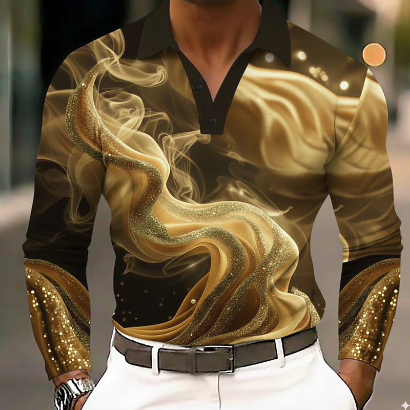 Men's Abstract Geometic Polo Long Sleeve Polo Shirts Lapel Casual Outdoor Street Athleisure Daily Wear 3D Print Buttons Spring Fall Winter Blue Gold Green